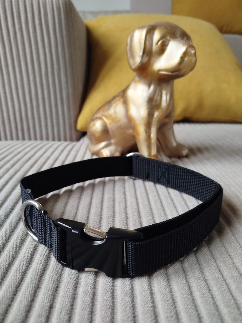 Chaque collier est confectionné à partir de sangles en polypropylène, un matériau reconnu pour sa résistance et sa durabilité au quotidien. Les boucles noires en aluminium apportent à la fois légèreté et robustesse, tandis que les anneaux et passants en acier inoxydable assurent une excellente tenue dans le temps.